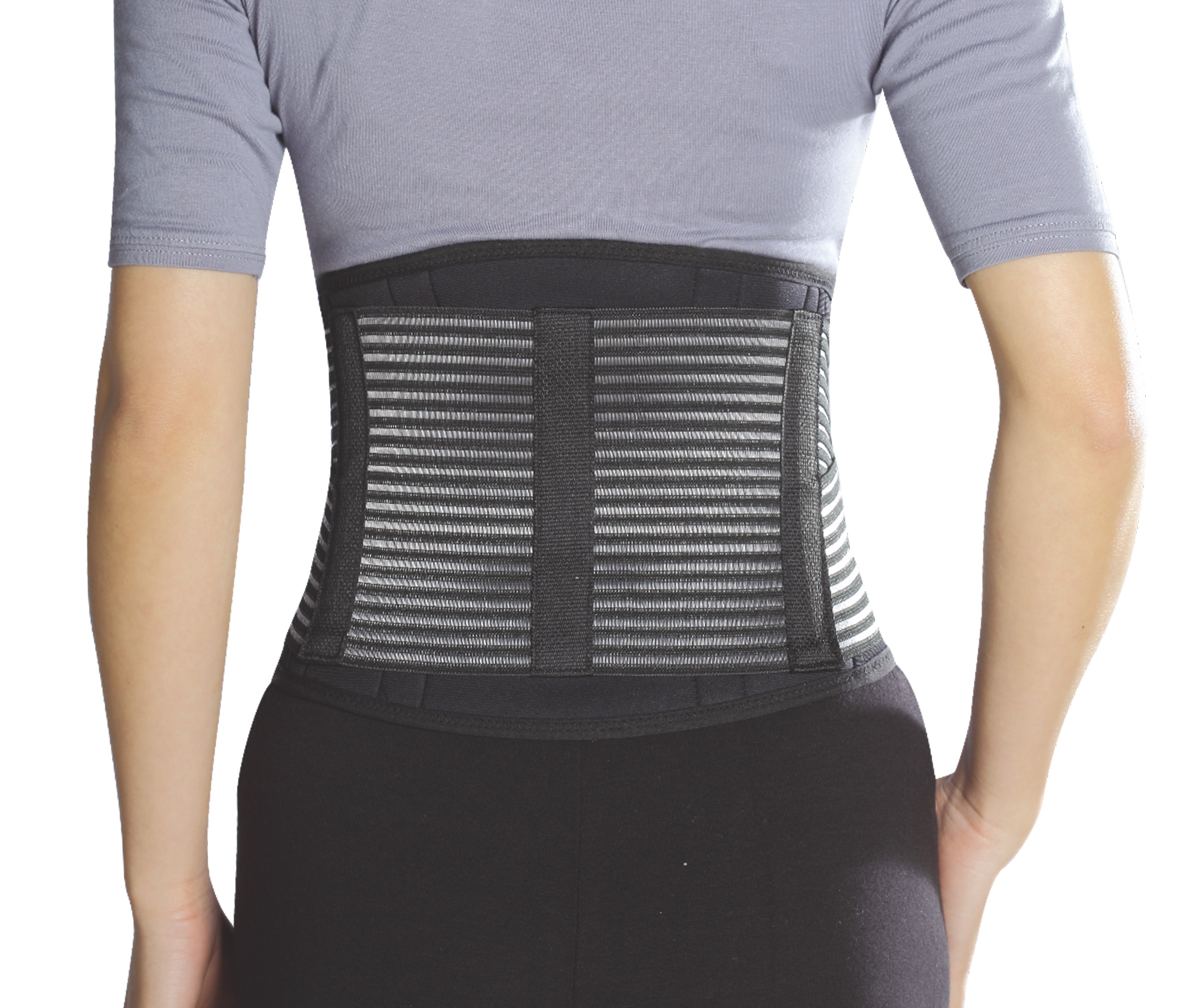 The back support was made of elastic mesh, elastic straps, 6 soft metal stays with anti-slip straps, neoprene materials, high quality Velcro closure. It is Ideal for weak back physical therapy and injury prevention.